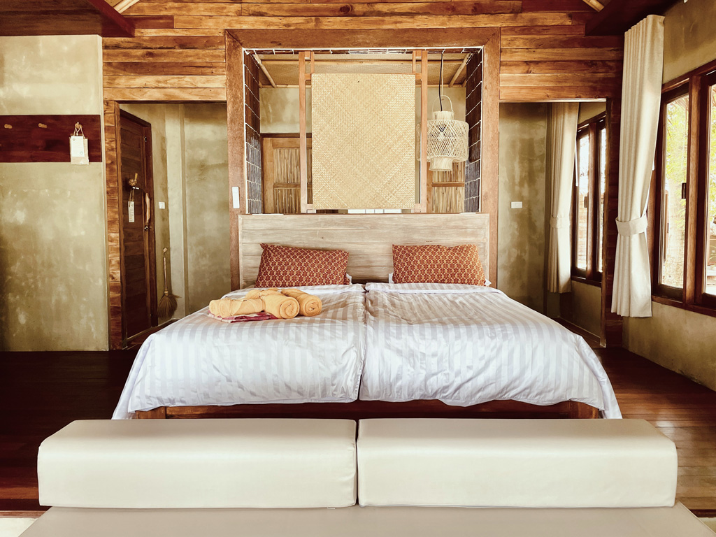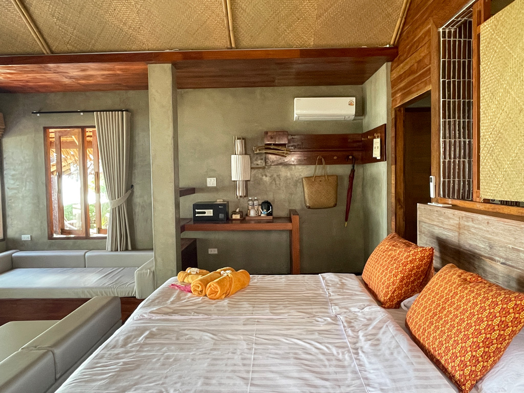 À la différence des bungalows qui sont devant la mer, ceux-ci comprennent deux chambres mitoyennes (réservées de manière indépendante). Situés au second rang, ils sont à environ 35 m de la plage. La superficie de la chambre est de 35 m² + 10 m² de balcon.
